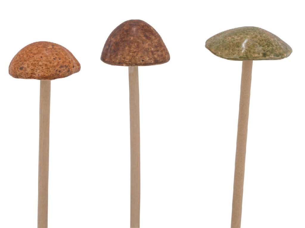 Dekorace houba, keramika, přírodní/zelená, 6,5x6,5x5cm