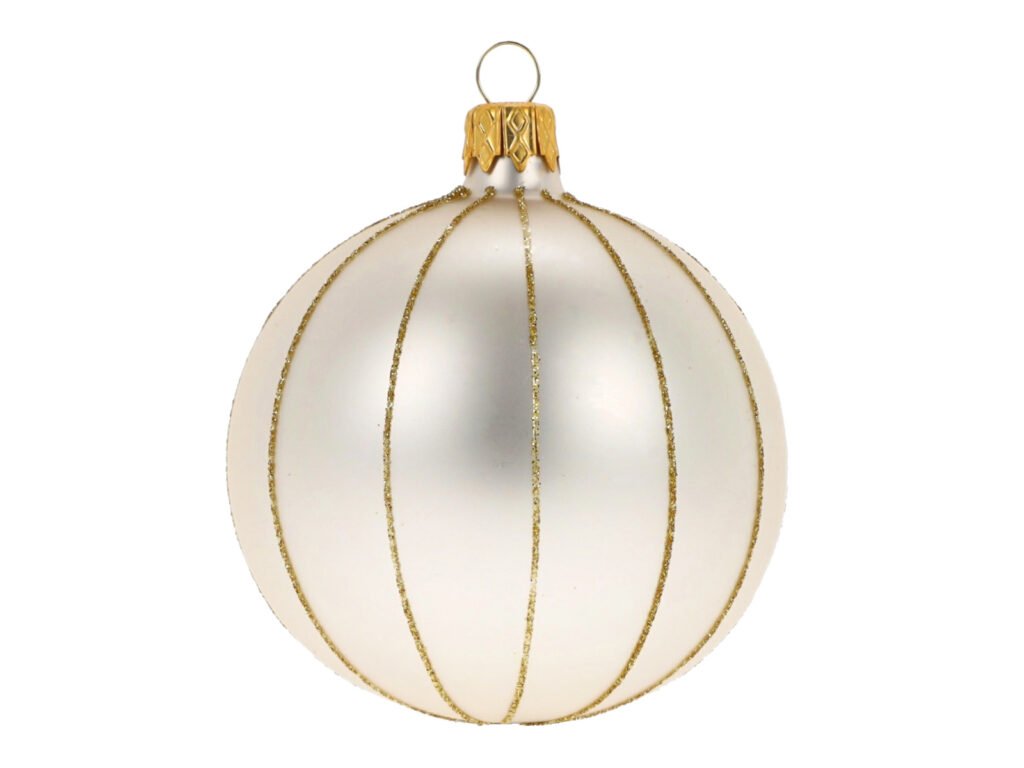 Ozdoba vánoční, koule proužky, krémová, 8cm