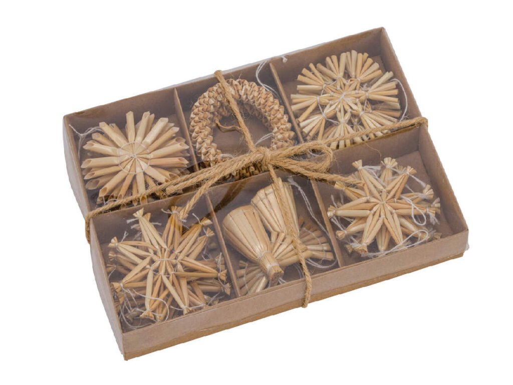 Ozdoba závěsná, sláma, přírodní, 19x13,5x2,5cm, box 20ks