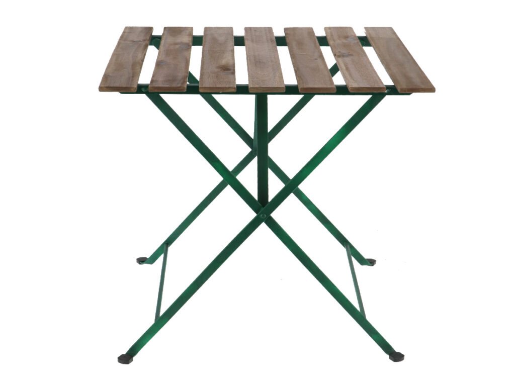 Stůl zahradní BISTRO, skládací, dřevo/kov, zelená/přírodní, pr.60x71,5cm