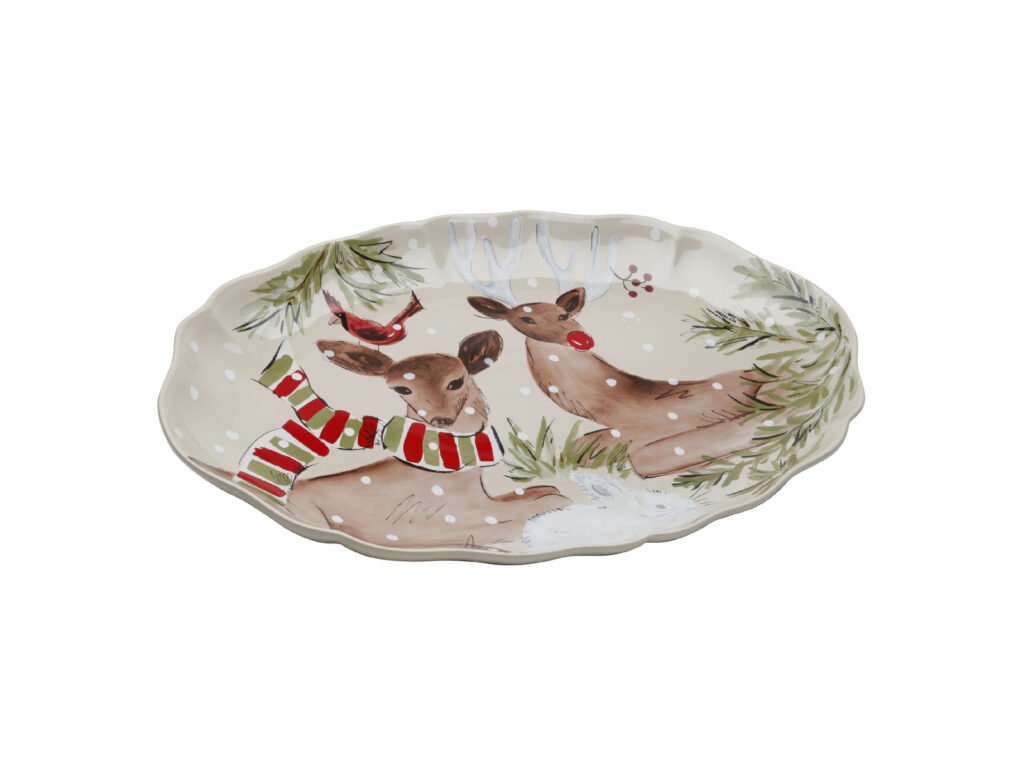 Tác oválný 50x35cm, DEER FRIENDS, bílá|Linen|Casafina