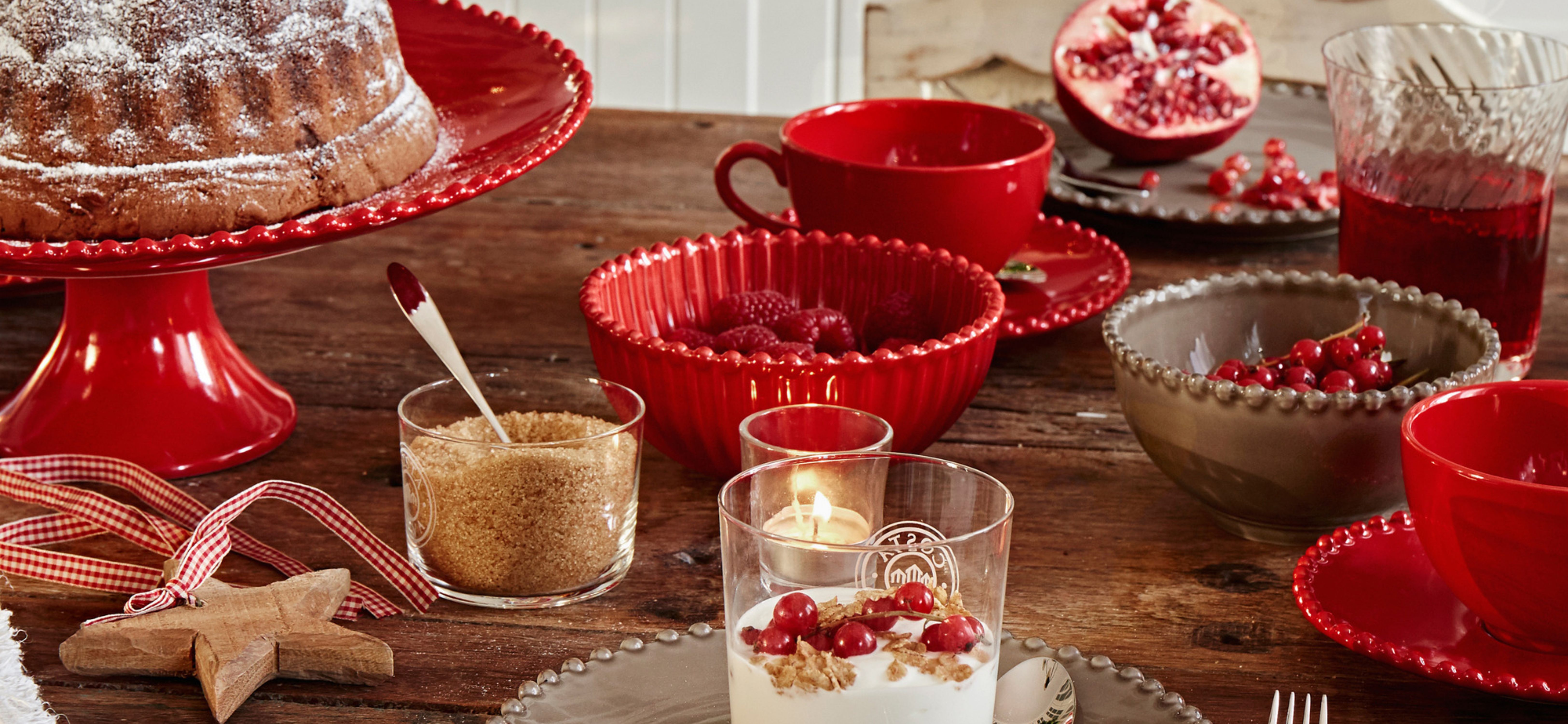 Vínovo-červená přináší útulnost a klasickou sváteční atmosféru. Krásně funguje s mosazí, krémovou a tmavě zelenou. Ideální pro stolování i věnce na dveře.